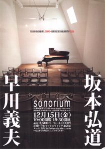 この日の演奏は、それぞれの独奏とデュオであったが、いずれもインプロヴィゼーションであった。しかしこのインプロヴィゼーションが、ジャズ文脈のものでもサウンド依存のものでもなく、まして理念先行の即興である事自体だけを目的化したものでもなく、楽句から大形式へ向かう構造化過程を踏んだクラシック的なアンプロンプテュであった。