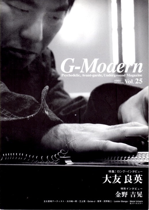 G-Modern 25号を開いてみると、灰野敬二、JOJO広重、非常階段などの固有名詞があちこちに踊っている。表4の広告は灰野敬二のドラム・ソロのアルバムだ。そう、G-Modernは言ってみれば彼らの牙城だったのだ。