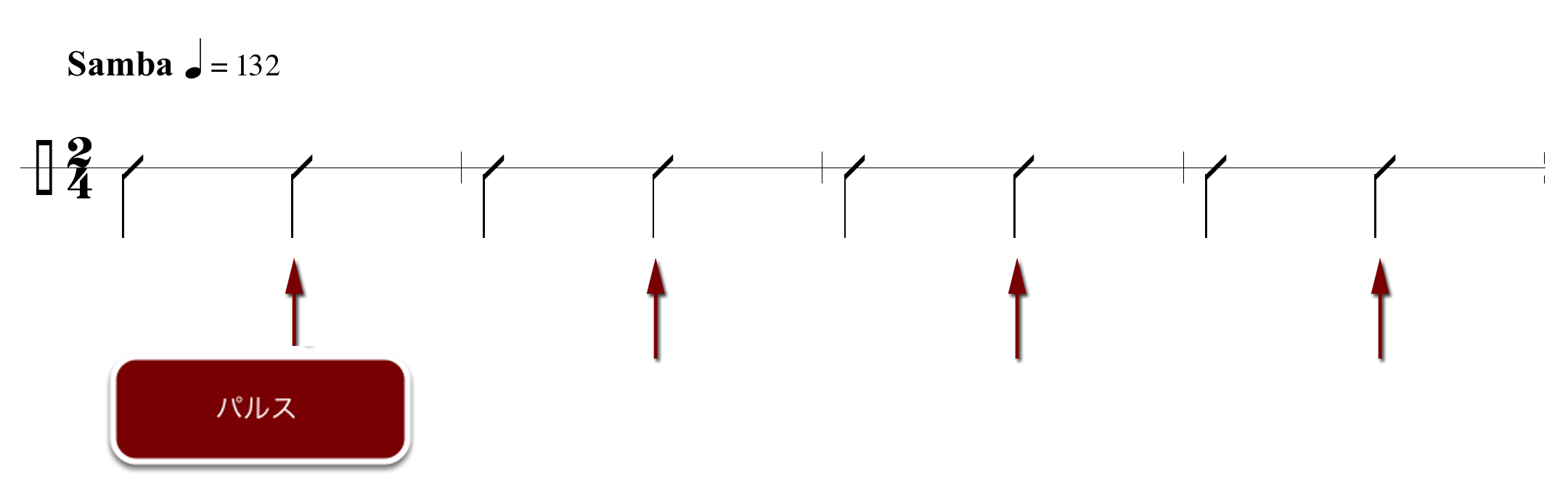 さて、ビートとパルスの関係を理解したところでパルスの位置を文化圏別に図解してみた。