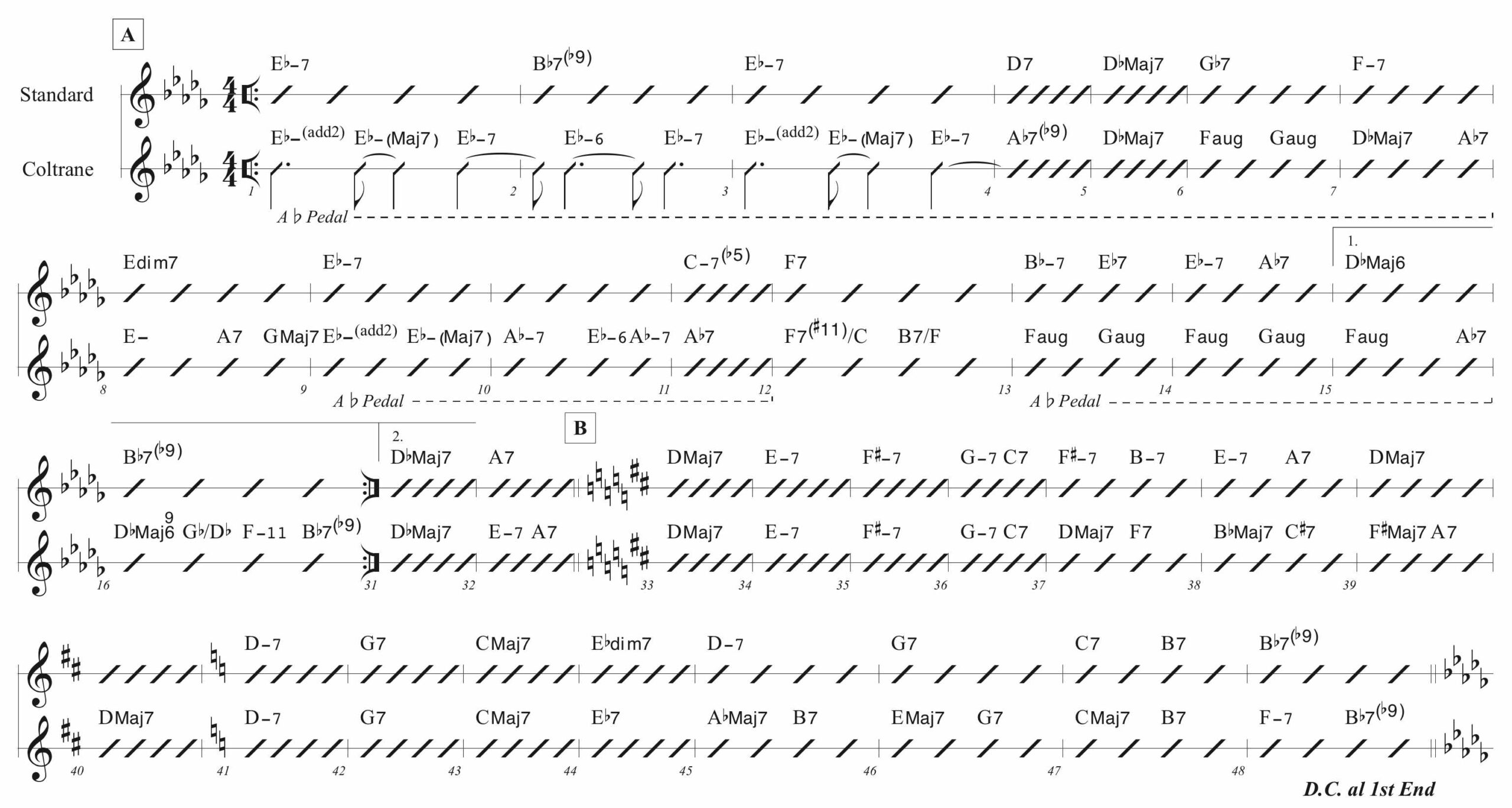 次にコルトレーンのコード進行をオリジナルと比較してみよう。