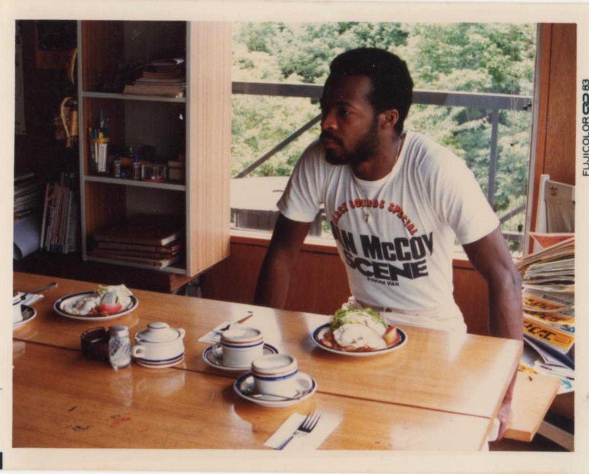 1982年に初来日を果たしたが当初は韓国の伝統音楽ファンの間での話題に留まっていたところ、ソウルでサムルノリの実演を聴いた芥川賞作家の故・中上健一が驚愕、1984年に芝・増上寺に招聘したところ一気にブレイク、オピニオン・リーダーやミュージシャンの熱烈な視線を浴びることとなった。僕自身もこの公演を目撃しており、近藤の申し出を受け入れる大きな要因となった。その卓越した技術、パワー、ダイナミズム、アンサンブルに圧倒され全身金縛り状態になったことを覚えている。「ソウル・ジャズ・バンド」はすなわち“韓国唯一のオリジナル・ジャズ・バンド”「姜泰煥トリオ」だったが、到着して「ソウル・フリー・ミュージック・トリオ」と呼んで欲しいとの希望が伝えられた。韓国では便宜上ジャズ・トリオと称しているが、自分たちが演奏しているのはジャズではなく、“フリー・ミュージック”であるという主張だった。情報の大きな欠落はもうひとつあり、姜泰煥がベジタリアンであるということだった。三十数年前のこと、東京でさえベジタリアン用の食事や食材を探すことは容易ではなかった。姜さんは韓国語以外は話さず、日本語を使う従兄弟で年配の金さんが通訳ということになった。バンドでは音楽だけでは生活ができず、姜さんはジュエル・デザイナー(可愛い小さな小銭入れをいただいた)、崔さんは放送局のビッグバンド、金さんは書家として生活費を稼いでいるということだった。崔さんとは英語でコミュニケーションを取ることができた。