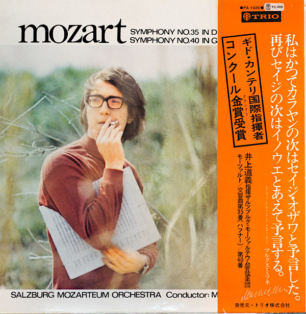 フランクフルトでフィアットをレンタルしたわれわれは、ロマンチック街道を経由しウィーンに入った。会社の出張でザルツブルグに出かけるのに、フランクフルトから一昼夜かけてロマンッチック街道をひた走りウィーンに入るという旅程が許されるのだろうか?運転はもっぱら僕の担当ではあったが。フィアットでドイツのアウトバーンを走るのは辛かったが...。ウィーンでは国立歌劇場でオペラを楽しみ、翌日、ザルツブルグに向かった。クレスハイム宮殿で井上道義のレコーディングに立ち会うためだ。グィード・カンテルッリ指揮者コンクールで優勝(1971年)した井上のデビューだった。井上はスカイブルーのワーゲンを駆って会場にやってきたが、すでに若い日本の女子音楽生に追われていた。日本人離れしたハーフの容貌とコンクール優勝で当地ではすでに憧れの存在だったようだ。24才の井上は名門・モーツァルテウム管弦楽団を率い、悠揚迫らぬマエストロのテンポでモーツァルトを振った。学生時代に演奏した40番ト短調がモーツァルト生誕の地でゆかりのオケにより眼前で演奏されている。身体の震えが止まらなかった。レコード会社に就職できた幸せを噛み締めていた。
