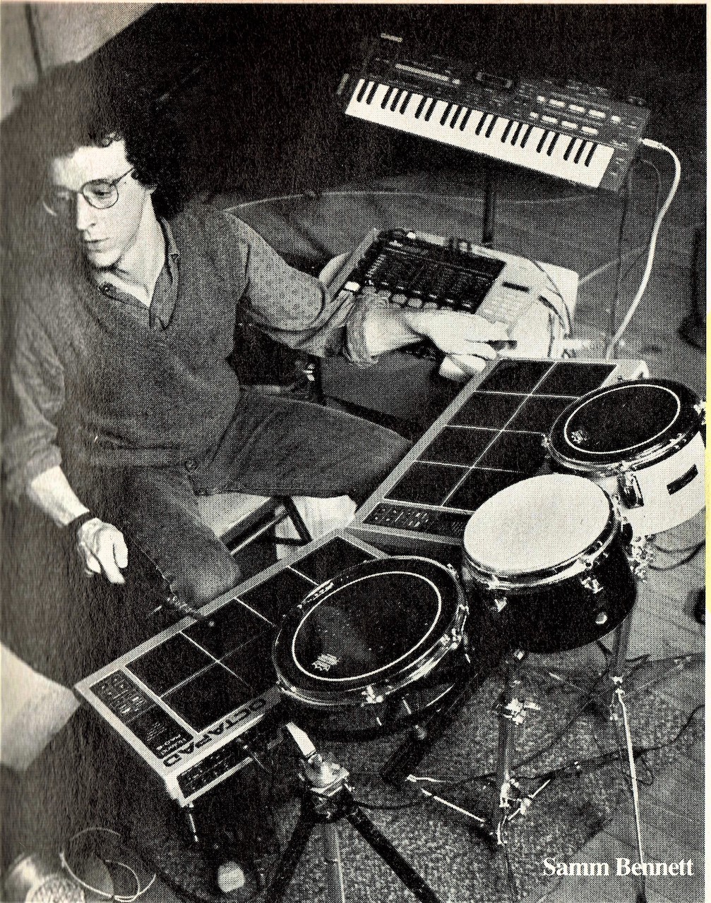 photo:Sam Bennett(L) Takashi Kazamaki©Aldo Mauro from [The Downtown Dozen by Bill Milkowski], 「MODERN DRUMMER APLIL 1988」