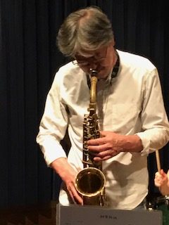 そう、今宵のライブはサックスの早坂紗知氏とこの前日めでたく61歳の誕生日を迎えられたベースの永田利樹氏を軸にしたカルテット。河岸は、各種コロナ感染予防対策も万全の横浜野毛ドルフィー。今夜のご夫妻のお供は、バンド TReS へのゲスト参加等で互いの音楽性を熟知しているピアニスト田中信正氏に加えて、様々なタイプ・規模の編成のバンドでその技が冴え今や引く手数多のドラムス外山明氏である。今日の私の最大の期待は、その外山さんのプレイがバンド全体をどうプッシュするかにあった。果たして、変幻自在のしなやかなドラミングは、当然ありきたりのリズムキープには留まらず、そのずらしが絶妙なタイム感を持ったグルーヴを産み出す独特のビートで巧妙にその音場の色合いを決定する呼び水となっていった。応えるサックス・ベース・ピアノも、嬉々として伸び弾けた。多彩色のリズムとメロディが渾然一体となってこちら聴き人に向け迫って来る。そんなスリル満載のひとときだった。このご夫妻の横浜方面でのライブは久しぶり。今後また、徐々に増やして行く予定だというお話を聞いて、私はなんとも嬉しい心持ちに。さらに終演後には、STAY HOME中に自作されたという、外山さんの「バラフォン」独奏まで飛び出すサプライズに、演者もお客様も皆が満足げな笑顔に包まれた。