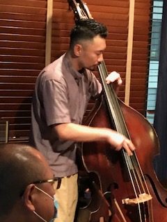 ベースは、湘南、横浜などを中心に活動されている石井康二(ヤスジ)氏。対するピアノは、ご存知の大口純一郎氏である。大口氏と言えば、ひところは、毎月お逢いしない月は無い程の状態であっだが、氏の右手首負傷による活動抑制や、コロナ影響等により少しくご無沙汰が続いた後、前回7月下旬に開催された氏の「パーカッシブ3」レコ発ライブ@新宿ピットインでお逢いして以来の再会となった。私にとって2度目の石井さんは、今日が初アドリブ・初大口さんとのことであったが、決して派手さはないものの大口さんの息遣いに耳をすましながらの丁寧で安定感のあるベースワークに徹した。対する大口さんは、1stセット前半は、初共演故かところどころで探り合いの感も受けたが、それも徐々に解きほぐされ、次第に淡々と熱を帯びながらゆったりと弾き込んで行く様がなんとも印象的だった。スタンダードもあった。ボッサもあった。海外著名ミャージシャンのオリジナルもあった、そうして悶絶レベルの超スローなラテンもあった。それらを通して、ハコのサイズ感とピアノのコンディションの快適さとも相まって、このファーストコンタクトのコンビネーションもステージ終盤には快調な纏まりをみせるに至った。しかし総じて圧巻だったのは、時空のツボを瞬時に捉え、それをさらりと見事に表現する大口節が横溢していたところだろう。久しぶりに大口さんの旨味をじっくりと味わうことの出来た、そんな贅沢なハマの夜だった。空模様も我に見方してくれた。一滴の雨にも濡れずに無事帰宅、もご機嫌だった。
