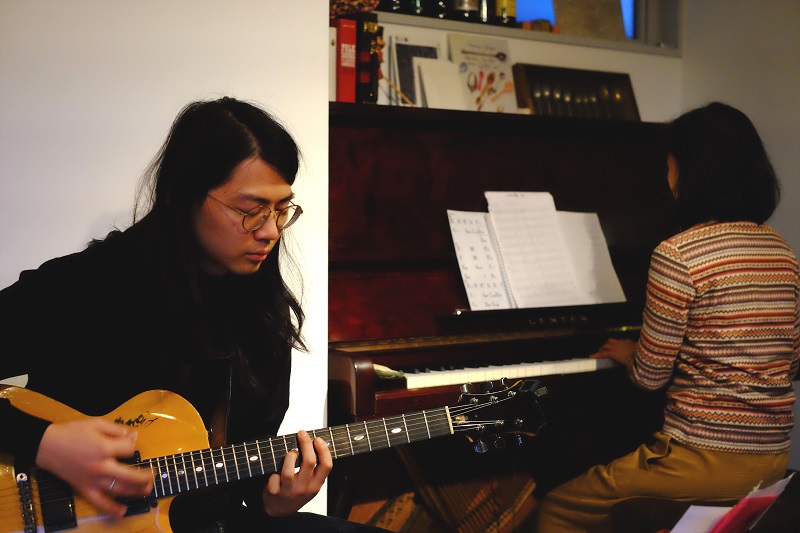 細井曰く、「根底は音楽ファン」だ。最近であれば、ラップのOMSBがヤバいし、曽我部恵一や友部正人や井出健介、ジャズのジェリ・アレンもオーネット・コールマンもジェフ・パーカーも、ベースの千葉広樹も、ロックの赤い公園も、よく聴いている。だから自分自身の音楽の方向性もさまざまにならざるを得ない。今はギターでの弾き語りも演っている。もとより歌が好きだからでもあるが、なにしろ新しいことをやりたいし、うまくもいかない。だから、ギターを始めたときのように躍起になって「修行」を続けているところだ。