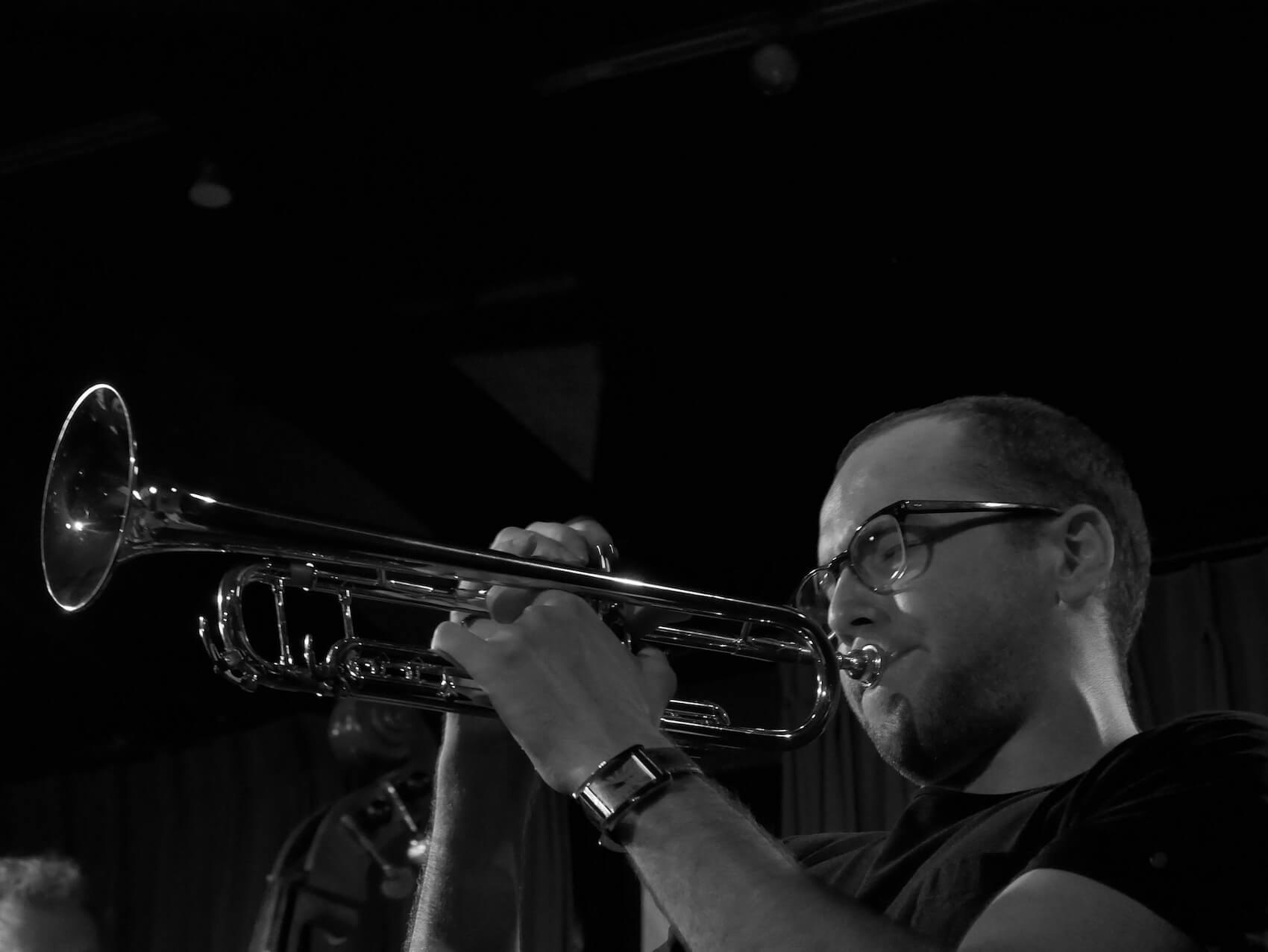 G: 当時はヴァイオリンを習っていたけれど、すぐにでもトランペットを吹きたくなってミュージック・スクールに相談したら、まだ早すぎるからとしばらく待たされ、8才になってやっとトランペットのレッスンを始めました。待っている間にいろいろなCDを聴いてトランペットの音色やジャズについて自分なりに研究しました。誕生日に買ってもらったマイルス・デイヴィスの『Kind of Blue』 や『Porgy & Bess』をよく聞いたな…今でも大好きなアルバムです。チェット・ベイカー、グレン・ミラーなどビッグバンドもよく聞きました。