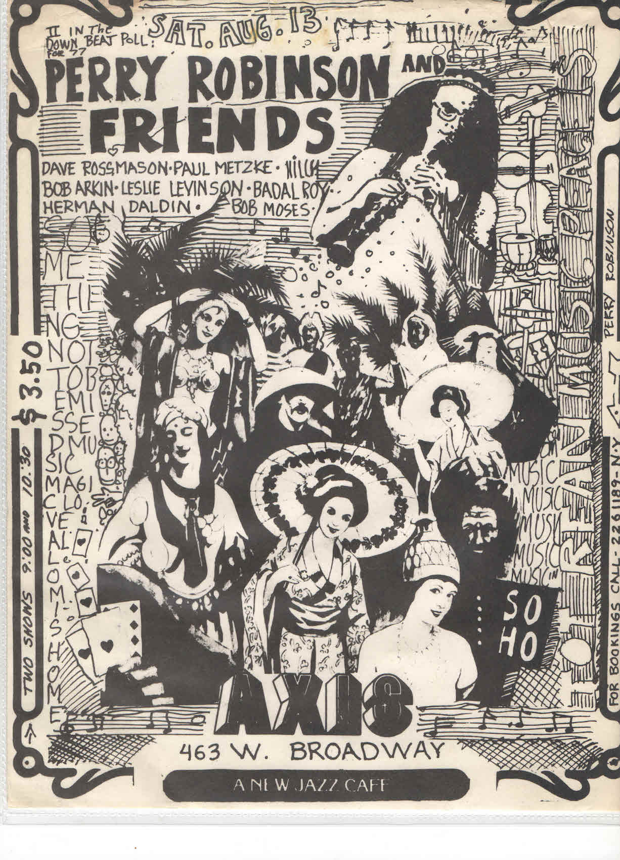 I had played clarinet in Junior High School and thought it a square stuffy instrument that was outdated and no longer relevant to the kind of cutting edge Jazz I enjoyed. Then I heard “The Call” on ESP featuring Perry with Henry Grimes and Tom Price. He played clarinet like a saxophone, like a big horn and it wowed me. I was inspired to pick up the clarinet again because Perry, like a master magician, revealed a new and hidden potential that was there all along but invisible and unknown.
