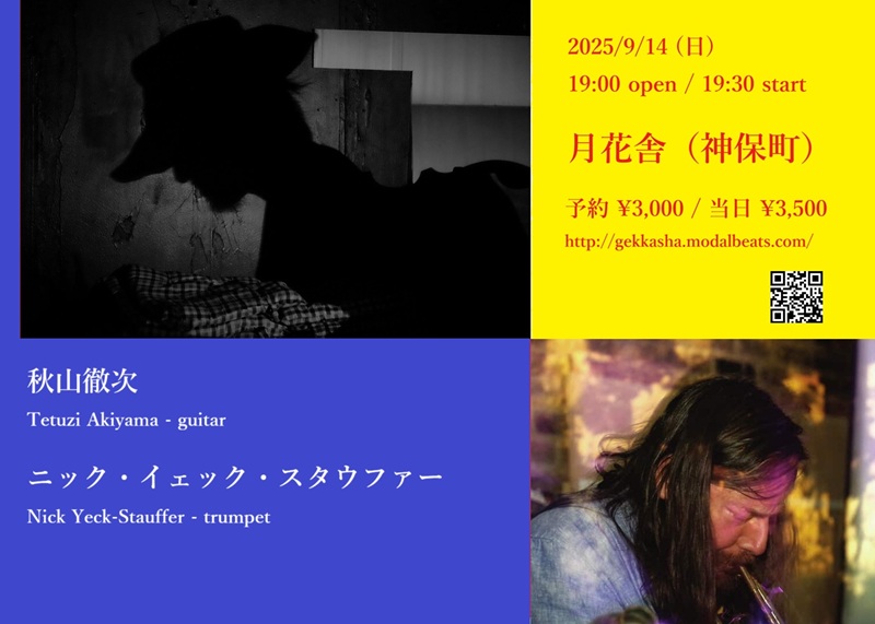 ● 2025/9/14(日) with 秋山徹次 (guitar)、【追加】ニック・イェック・スタウファー (trumpet)