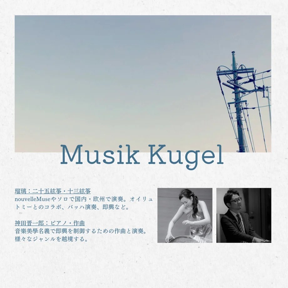 箏の瑠璃とピアノ/作曲の神田晋一郎によるデュオ Musik Kugel(ムジーク・クーゲル)が活動をスタート。12月2日に初の単独公演として「北とぴあ国際音楽祭2023」に参加予定。箏は二十五絃箏を中心に、レパートリーは筝曲、西洋の古楽から現代曲まで、そしてオリジナルと多彩。