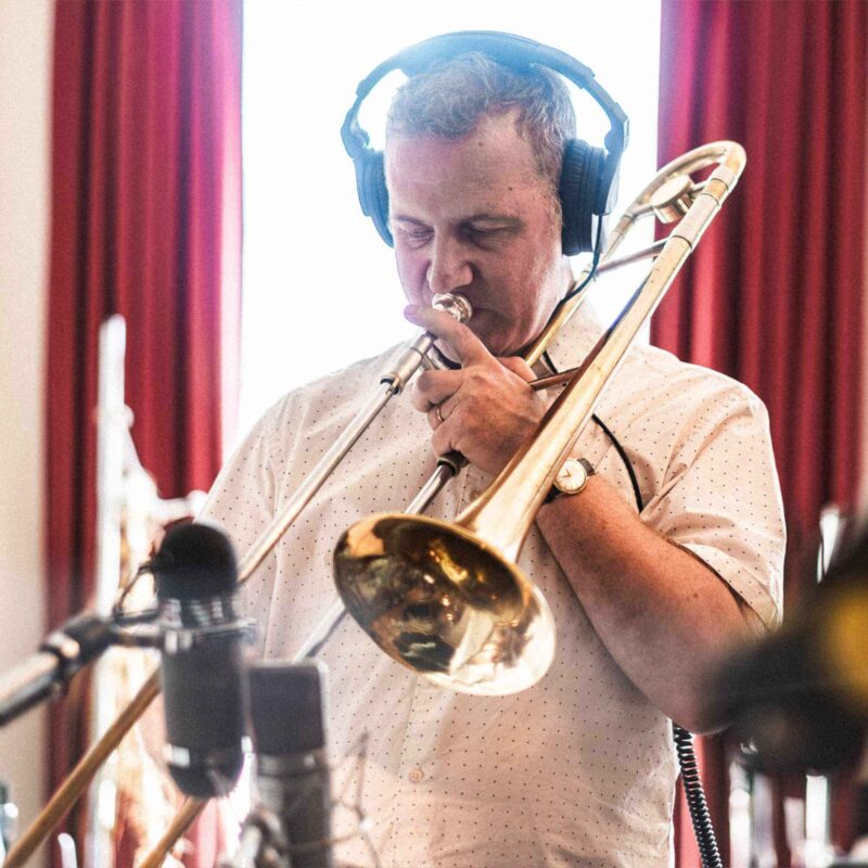 4トラック目の<Absinthian (アブサン酒)>は、これまた奇抜なアルペジオで始まる。今回楽曲解説にこれを選ぼうか散々迷った。この曲の印象も強烈だったからだ。このアルペジオ自体がテーマになっており、それぞれの管楽器の間でこのアルペジオを細分化して回すアレンジがやけに新鮮だった。それにしても、このテーマはどの管楽器にとっても相当難易度が高い。高度なクラシックのテクニックが要求されている。全員がリラックスしてこれを演奏していることに驚く。小刻みに進行するハーモニーもすごい。フォームも奇抜で、12小節の最後に2拍無音になるというヴァースが繰り返されてからコーラス部分に入る構成で、これが、まあカッコいいこと。
