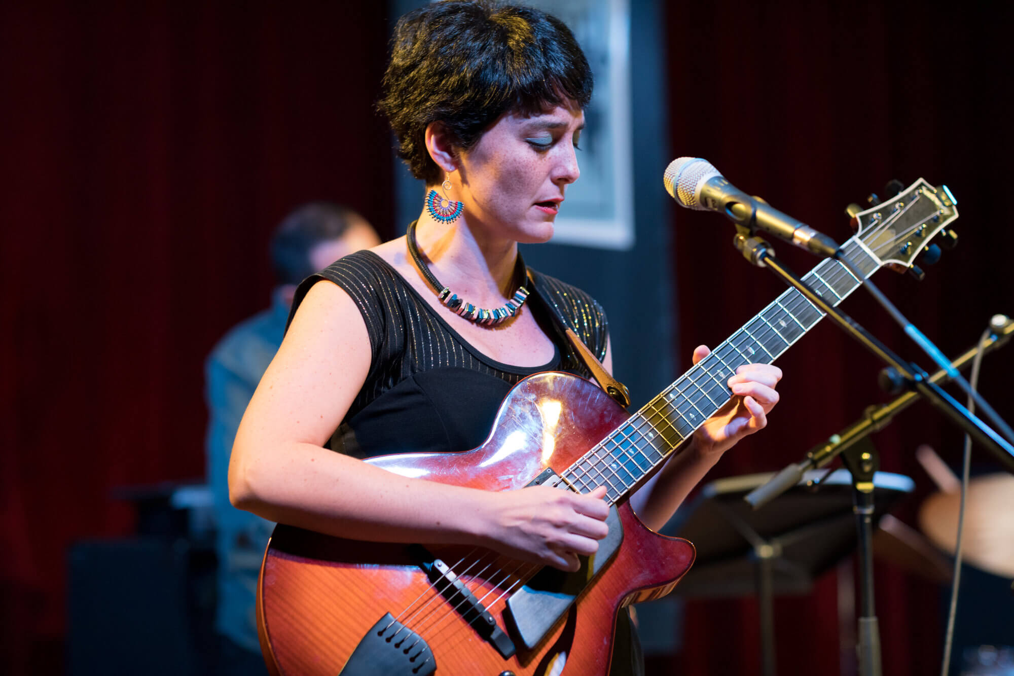 3トラック目の<Lo Unico Que Tengo>がまたショッキングだった。この曲はカミラのレパートリーの一つで、彼女の編曲が実に面白い。オリジナルはチリのIsabel Parra(イサベル・パラ)がVíctor Jara(ビクトル・ハラ)の作詞作曲/ギターで1957年に録音された名曲だ(YouTube →)。オリジナル曲のスタイルはチリのフォークソングで、苦境に立ち自分には自分の手があるだけだ、という哀愁の漂う歌だ。この曲の特徴は1度メジャー(Eメジャー)に対するモーダルエクスチェンジとして5小節目に登場する♭3度メジャー(Gメジャー)になる部分なのだが、カミラは長2度上てF#のペダルをベースだけで演奏し、調性を決める3度音を排除して長調短調の区別を濁し、あたかも中近東のメロディーの様に聞こえさせているのだ。しかもカミラの声は恐ろしく透き通っている。実に美しい。実はカミラもカタルシス発足当時からゲストで加わっていたが、当時のカタルシスの趣旨に沿ってギターは弾いていなかった。このアルバムでは彼女のギタリストとしての凄さが強くフィーチャーされている。最初聴いた時ギタリストが他にいるとばかり思っていたほど、普通の歌手兼ギタリストを超越している。