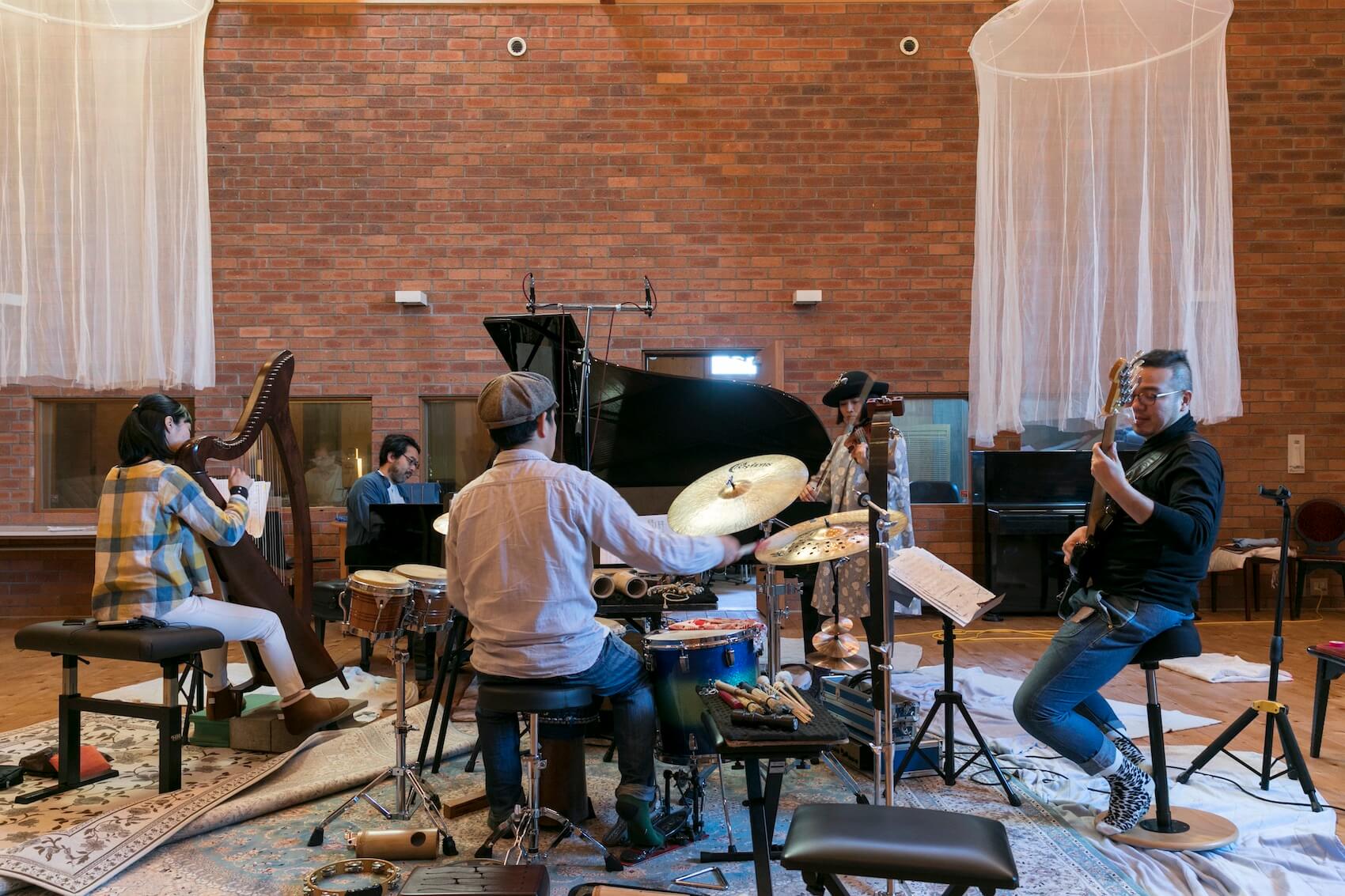 さて、録音はワンポイントの真髄を貫いた空間表現で、楽器のオン・オフが音像を構成。自然空間に現れる楽器の色彩に納得。ピアノとハープの語らいに弦が柔らかい音色で覆い被さる。各楽器をミックスしたマルチ録音とは違う。パーカッションも空間が伴うこととオンマイクの音とは、打楽器の余韻が異なって重みを増す。ベースは音量は小さくとも唸っている様がワンポイントならでは。時にジャズっぽい会話の演奏が面白い。