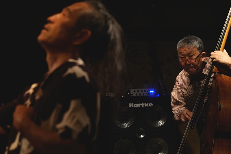 山下はここぞと決めて歯をくいしばり斬り込んでゆく独自のスタイルを展開する。毎回が一期一会のみごとなものであり山下にしかできないプレイだが、ここにも青木の楔が打ち込まれていた。そしてシカゴのフリージャズを伝える青木のピチカートにも、山下のエッジを効かせた音色とフレージングが楔を打ち込み返していた。