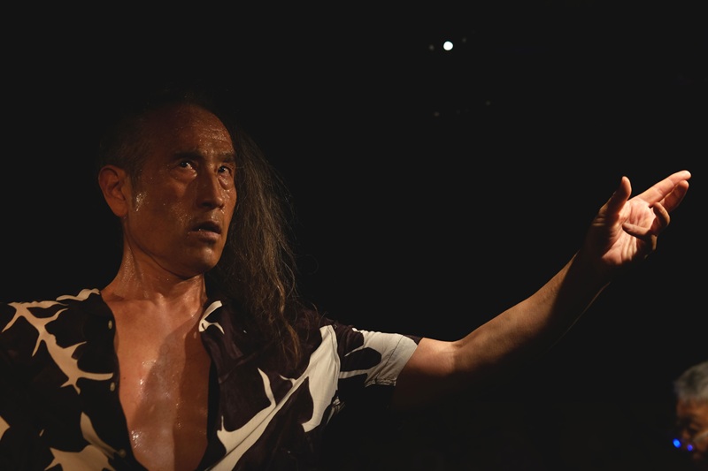 「開かれ」をあっけらかんと体現したのは戸松美貴博だった。拡声器で場に擾乱を持ち込むのもまた逸脱であって、さらに観客の手を取って次々にステージに上げて自由に躍らせる蛮行なんてトリックスターそのものだ。それでいて観客にただの笑いを許さない緊張感もあった。