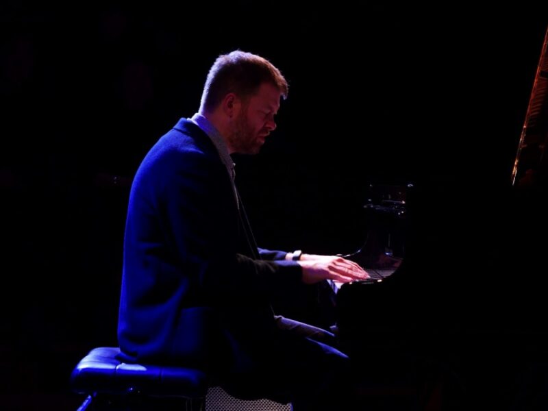 アンコールは〈Souffle〉。コリンが左手でテーマを弾き始めるとすぐにベース、ドラムスが加わる。サトリウス(ds)がスネアの上に木片(?)を乗せリズムを刻み始めた。スティックで叩く木のアタック音と、スネアのヘッドをマレットで刻む音が反響する。ベースとドラムのリズムの上で、ピアノのメロディが少しずつ変化し繰り返されていく。スフレはお菓子のことではなく、「儚い」とか「淡く膨らんだ」という意味とのこと。とても耳に残る旋律で、いつかアルバムに収録されるかもしれない、とのことだ。