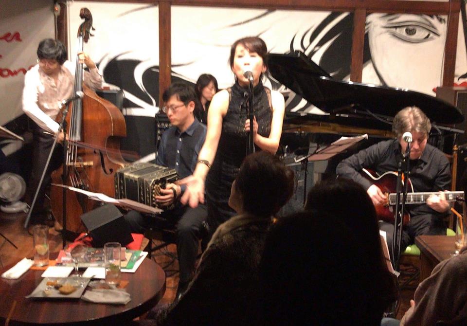 白眉であったのは、ヴォーカリストのSayaca のパフォーマンスだった。このトリオのデビューCD『Trio Celeste & Sayaca』でもっとも耳を奪われたのもSayaca の歌だったが、タンゴが持っている「ノラズ」のレチタティーヴォを、ほとんど自分の感情そのもののように歌った彼女のヴォーカルは、この日も見事で、これが田中の「ノリ」と見事な対比となっていた。